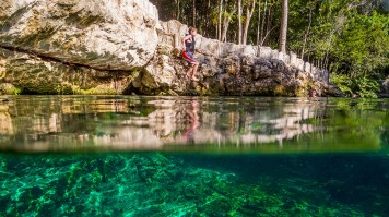 - Nagez dans les cénotes de Tulum, le terrain de jeu sous-marin de renommée mondiale pour les plongeurs expérimentés. Même si la plongée dans les grottes n’est pas votre truc, le simple fait de nager et de faire de la plongée avec masque et tuba dans ces dolines naturelles est une expérience inoubliable au Mexique. Dos Ojos surprend par son eau incroyablement claire dans un environnement hors du commun.
