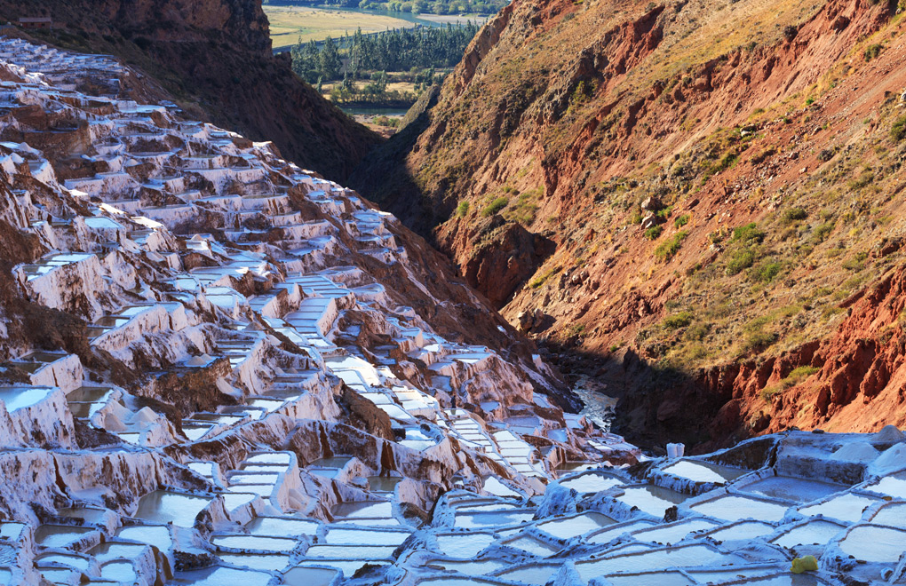Salinas est l’un des sites les plus spectaculaires de la Vallée Sacrée. Près de Maras, c’est ici que vous trouverez des milliers de marais salants qui ont été utilisés pour l’extraction du sel depuis l’époque Inca. Une source d’eau chaude au sommet de la vallée déverse un petit ruisseau d’eau fortement salée qui est déviée vers des marais salants et évaporée pour produire un sel utilisé pour lécher le bétail. Construits à l’origine par les Incas, les Péruviens exploitent encore aujourd’hui les salines.