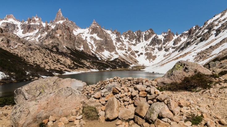 - En hiver, le lac de Refugio Frey est gelé.
