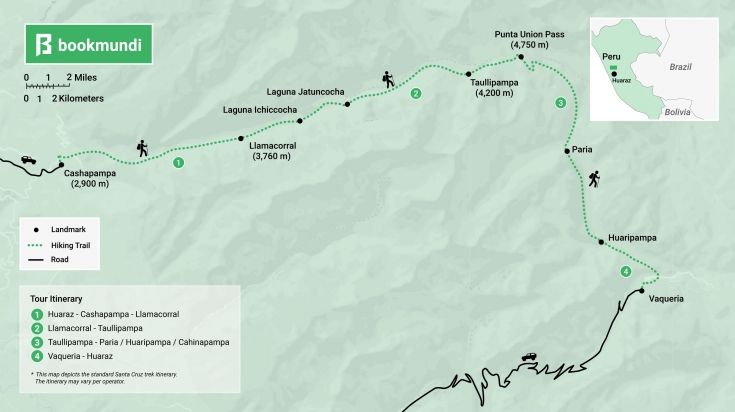 Itinéraire 3D / 2N du trekking à Santa Cruz